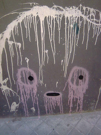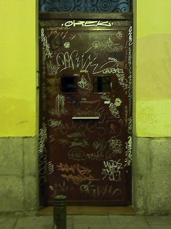 «Iba yo de risas el 1 de enero por Fuencarral, cuando vi a Milnombres. Algo me empezó a hablar, (en un primer momento pensé que era Palomin pero luego me di cuenta que no, que esa voz venía de aquella puerta negra pintarrajeada con nombres y cosas sin sentido). Como digo, me acerqué a ella y me empezó a hablar. Me comentó que estaba harta de ser la pared y el papel de muchos chicos, de ser el retrete de indecentes, el desahogo con patadas de gente cabreada… así que en mi estado de euforia, lo único que le pude decir fue feliz año, darle un beso y salir corriendo! No quería volver a decepcionar a la pobre Milnombres!