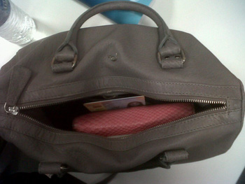 Os cuanto cómo fue la historia… Estaba yo trabajando duramente, cuando me acerqué al sitio de Miti, una compi del trabajo, y mirando en su bolso ví que sobresalía un dni de otra compi. Después de darle la chapa en plan padre, de «cómo se te ocurre dejar esto aquí suelto», lo volví a depositar donde estaba. Al levantarme y tener una vista cenital de la situación, vi la cruda y verdadera realidad, lo que parecía un bolso no era tal, y lo que estaba haciendo Miti, era alimentar a su mascota, Sapoto, (que tiene lengua y todo.. vean, vean!!).