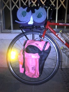 «Pues nada, estábamos Carol y yo visitando a unos amigos que estaban haciendo un viaje en bici. Total, que paseando con sus bicis nos damos cuenta de que… ¡se le había subido un individuo al transportín! Así, cómo no iba a pesar la bici… Hay que decir que, más que un polizón, éste es un claro ejemplo de simbiosis hombre-ser, en el que el ser ofrece protección de los enseres de la humedad a cambio de transporte gratuito.»